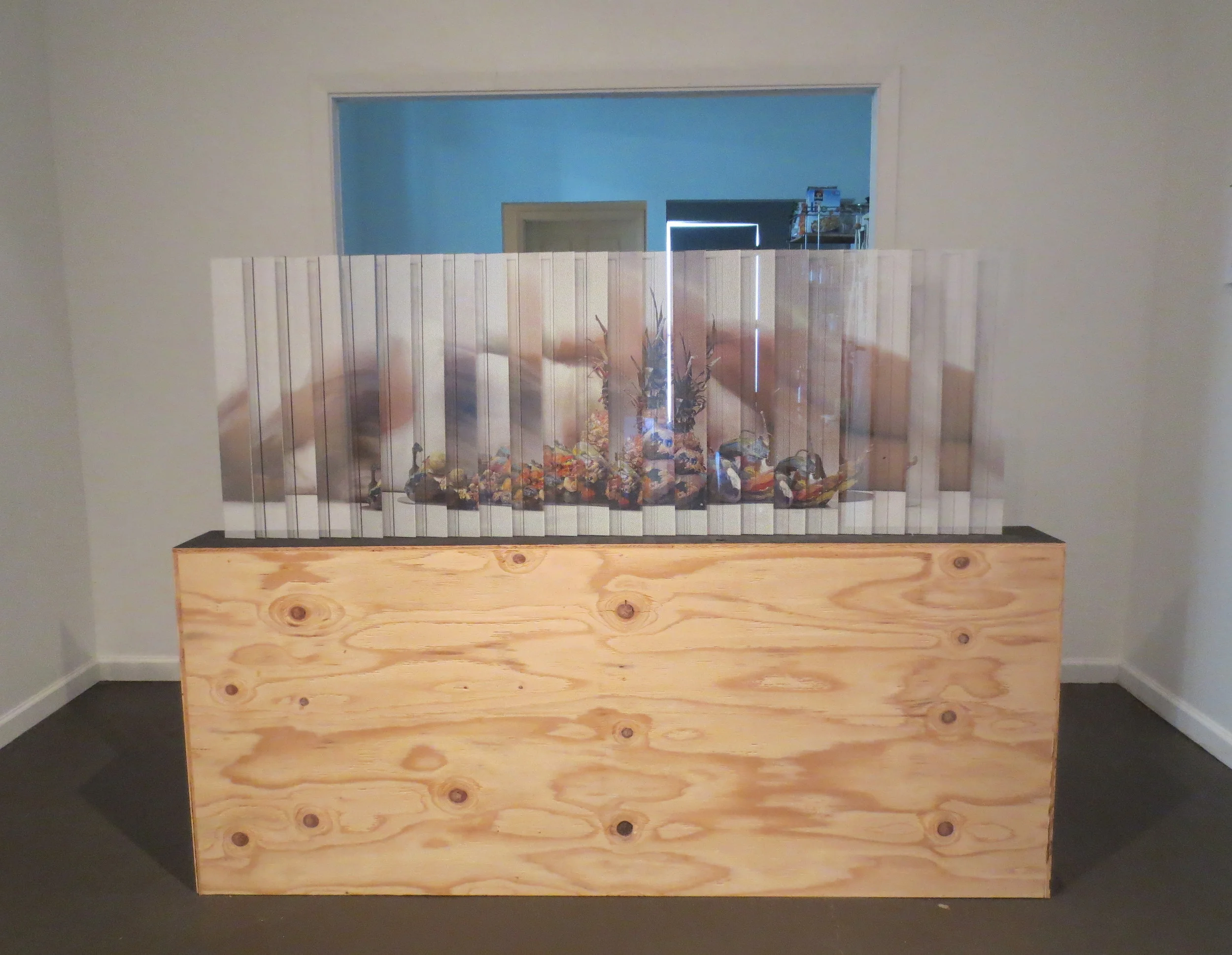 Reliquary II, Acrylic mounted digital prints, acrylic hinges, two-way mirror, 32” x 9” x 9”, 2015